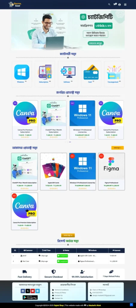 A fully custom WordPress Website for DigitalShop. This is a e-commerce website that build for selling digital products.