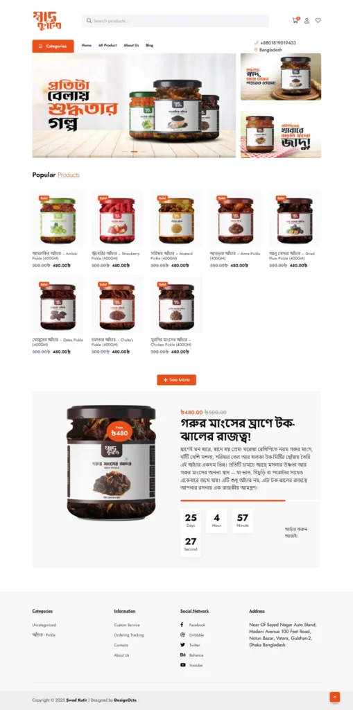 A WordPress E-commerce Website design for SwadKutir.com with the web design team of DesignOcta